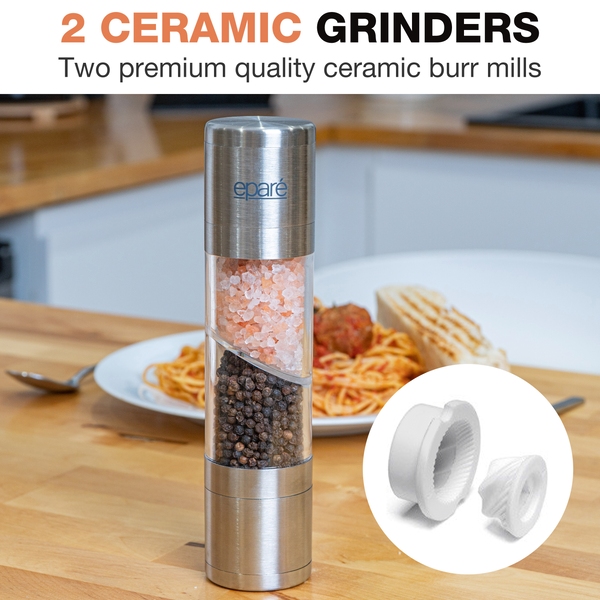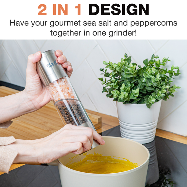 I have had a dual manual salt and pepper mill for a couple of years . I bought this as a gift for my grandson and his girlfriend for their new apartment. They liove it, too!