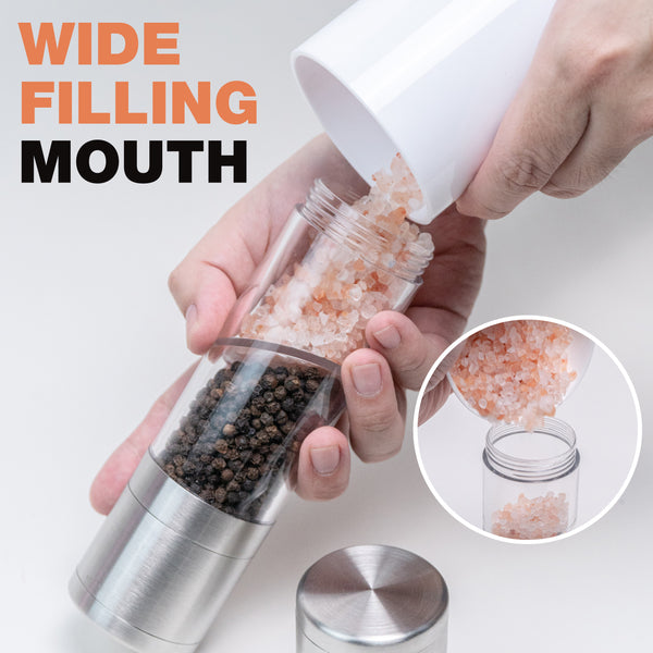 I love these when we first get them. I have one and my mother had one they ended up throwing it away. You cannot get them open to refill them so they are absolutely great but once they run out of salt and pepper, they end up in the trash.