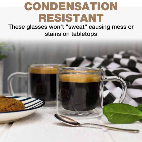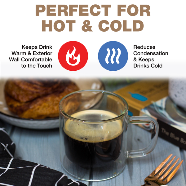 I have a set of the small espresso cups, the espresso mugs, and the tea glasses and I absolutely love them. The coffee and tea stays hot and you don't burn your hands when holding them. They are also incredibly beautiful.